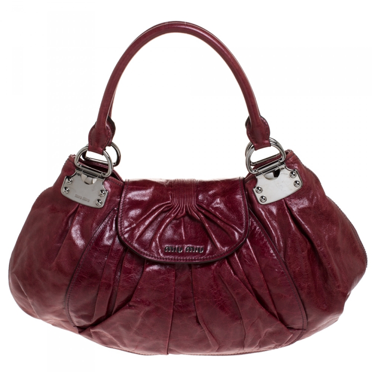مملوكة مسبقًا حقيبة ميو ميو جلد عنابي مجعدة