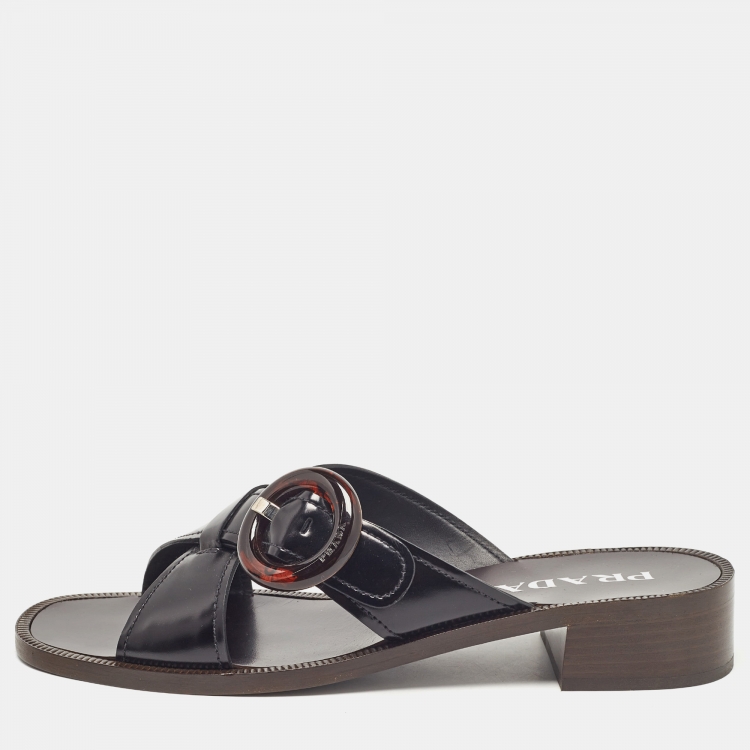 Pre Owned Prada Black Leather Slide Sandals Size 41