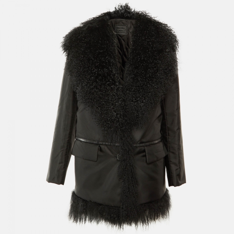 Pre Owned معطف برادا أفغاني ياقة شيرلينج صناعية أسود مقاس صغير - سمول