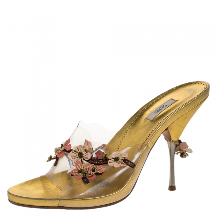 مملوكة مسبقًا صندل برادا مزخرف زهور جلد و PVC متعدد الألوان مقاس 38.5