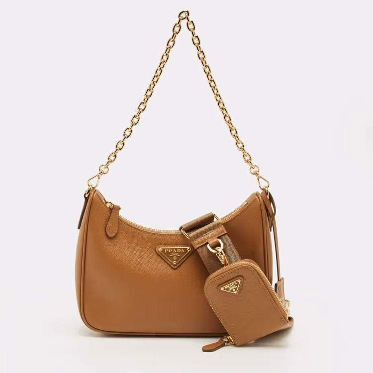 حقيبة كتف برادا إصدار مُعاد 2005 جلد سافيانو بني