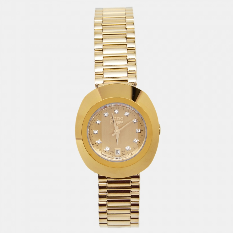 ساعة يد نسائية رادو دياستار R12306303 معدن ذهبي اللون صفراء 27 مم