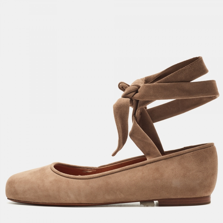 Ralph Lauren Brown Suede Ankle Wrap Ballet Flats Size 37