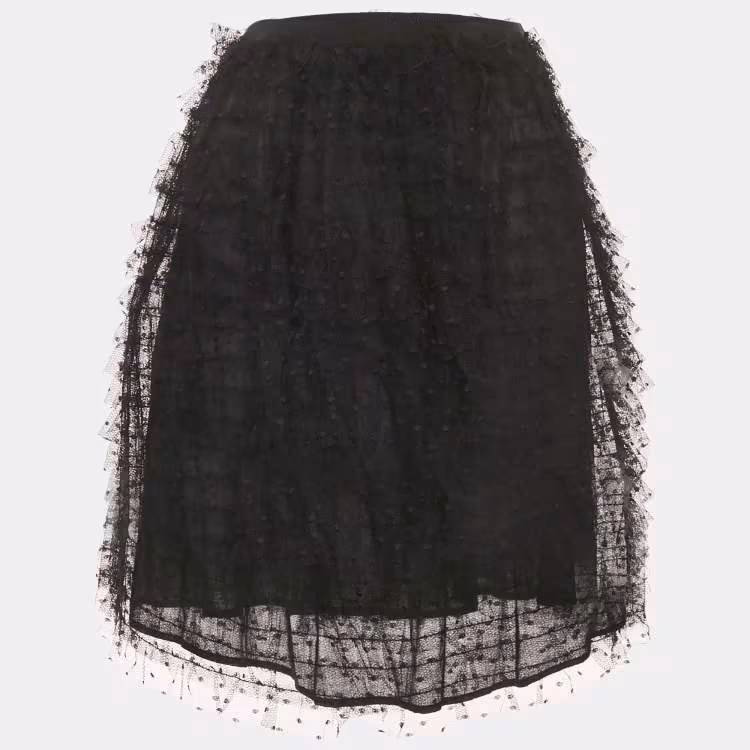 Pre Owned تنورة ميني ريد فالنتينو تول أسود بكشكشات مقاس صغير - سمول