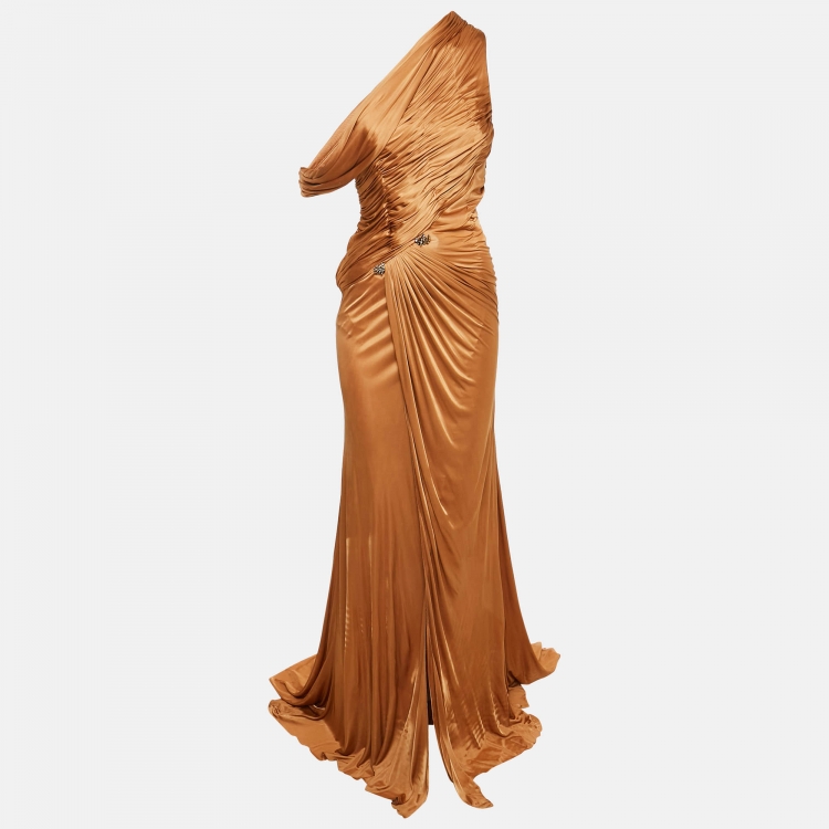 Roberto Cavalli Brown Jersey Brooches Detail Maxi Dress S