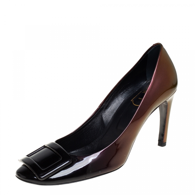 مملوكة مسبقًا حذاء كعب عالى روجر فيفييه ترومبت جلد لامع متعدد الألوان ميتالك مقاس 38.5