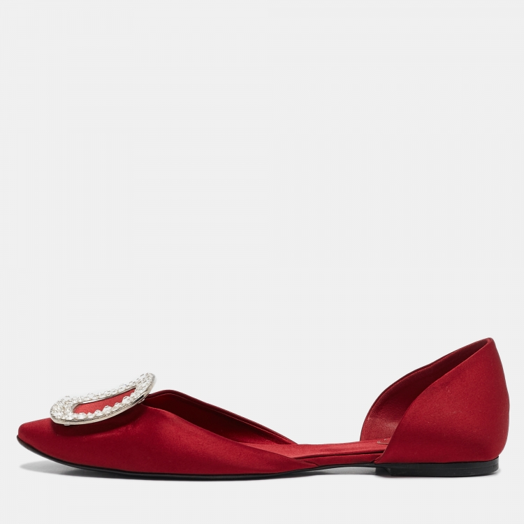 Roger Vivier Red Satin Crystal Embellished D'orsay Ballet Flats Size 38