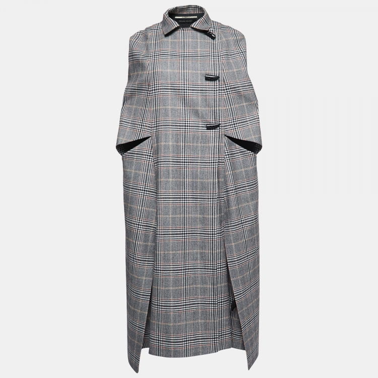 مملوكة مسبقًا Roland Mouret Grey Checked Wool Merril Cape XS