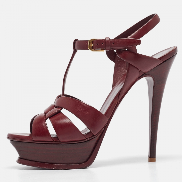 Saint Laurent Burgundy Leather Tribute Ankle Strap Sandals Size 38.5