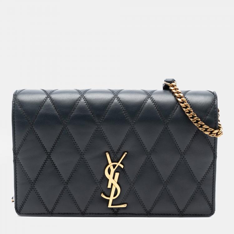 حقيبة سان لوران باريس أنجي سلسلة مُضَلَّعة جلد خروف سوداءألماسية