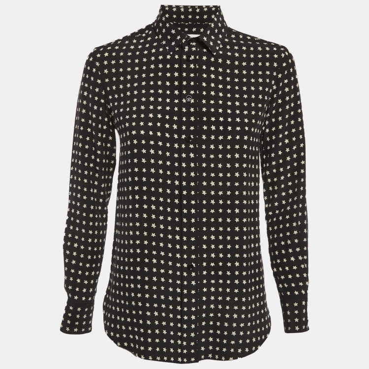 Pre Owned قميص سان لوران باريس كم طويل كريب بطبعة نجوم بلون واحد مقاس صغير - سمول