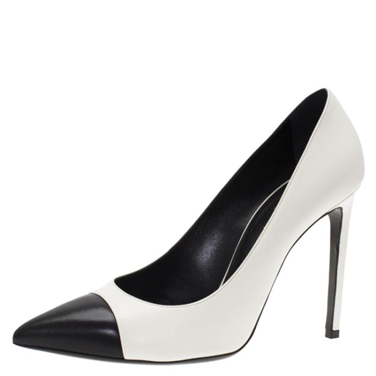 حذاء كعب عالي سان لوران باريس مقدمة مدببة جلد ثنائي اللون مقاس 41