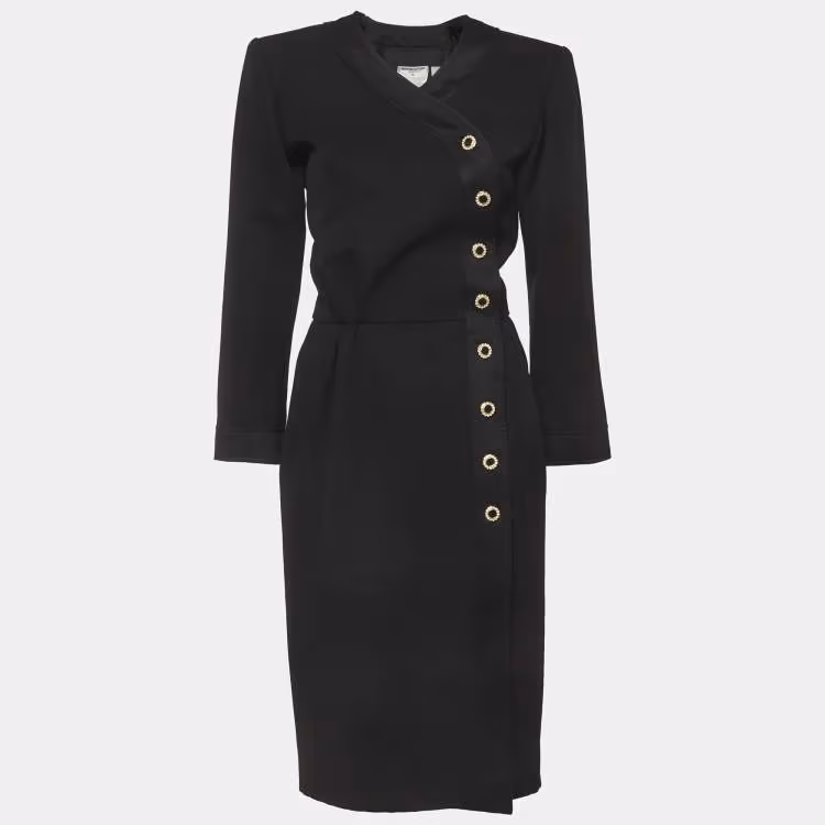 Pre Owned فستان سان لوران باريس توبدي أسود ملفوف طويل ميدي مقاس كبير
