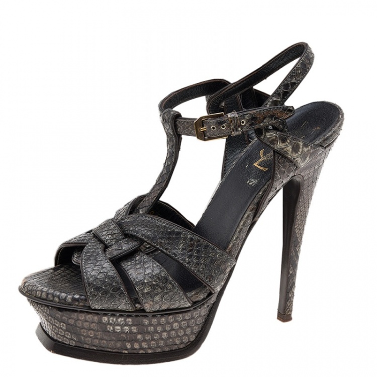 Pre Owned صندل سان لوران تريبوت جلد ثعبان نعل سميك مقاس 35.5