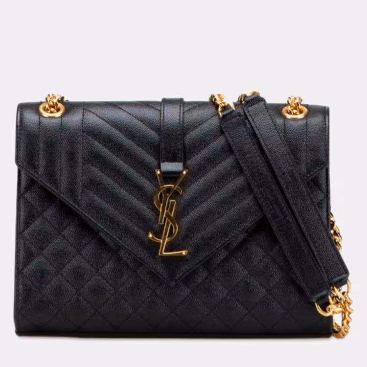 Pre Owned حقيبة كتف سان لوران بشعار YSL جلدية متوسطة بلون أسود وذهبي