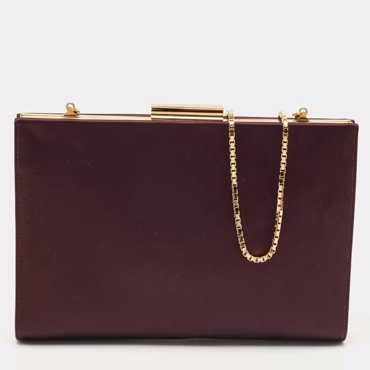حقيبة كلتش سالفاتوري فير اغامو ساتان بنفسجي بإطار وسلسلة