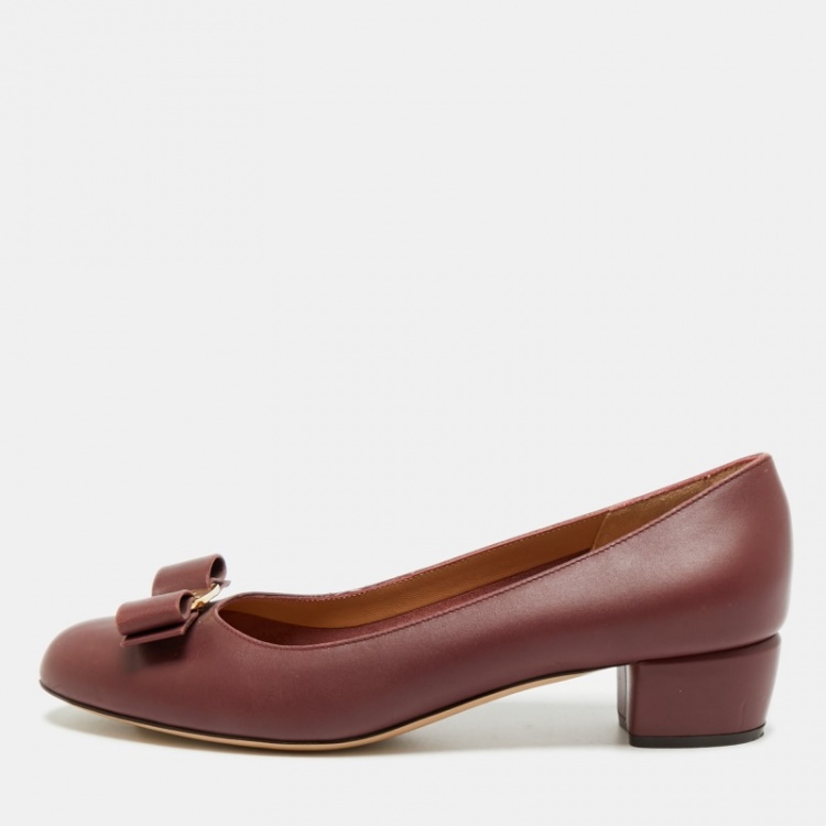 حذاء كعب سميك سالفاتوري فيراغامو فيونكة فارينا جلد لامع أزرق مقاس 38.5