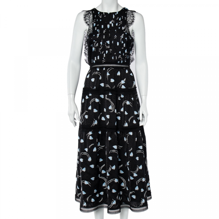 مملوكة مسبقًا فستان سيلف بورتريت مطبوع نقشة هندسية تجريدية أسود بلا أكمام متوسط الطول مقاس وسط (ميديوم)