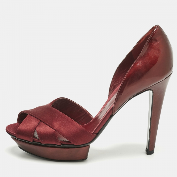 Pre Owned حذاء كعب عالي سيرجيو روسي نعل سميك جلد لامع وزوجاجي بورجوندي مقاس 38