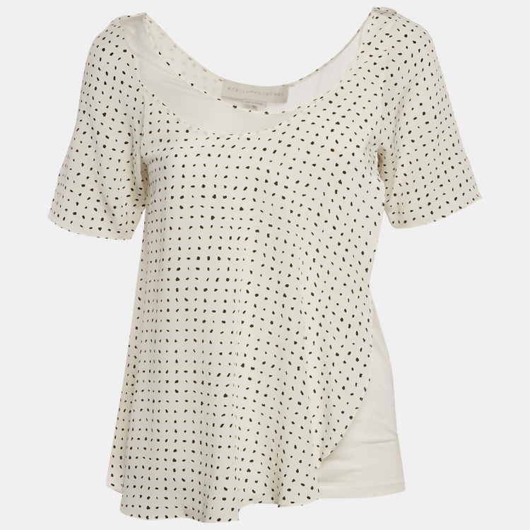 توب ستيلا مكارتني أبيض بطبعة حرير وحياكة بطبقات مقاس صغير
