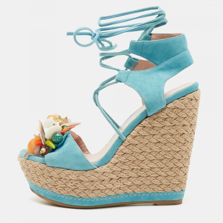 مملوكة مسبقًا صندل إسفين برباط شامواه أزرق ستيوارت وايتزمان مقاس 36