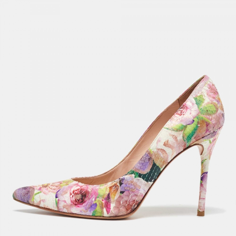مملوكة مسبقًا Stuart Weitzman Multicolor Snakeskin Leather Floral Print Pumps Size 40