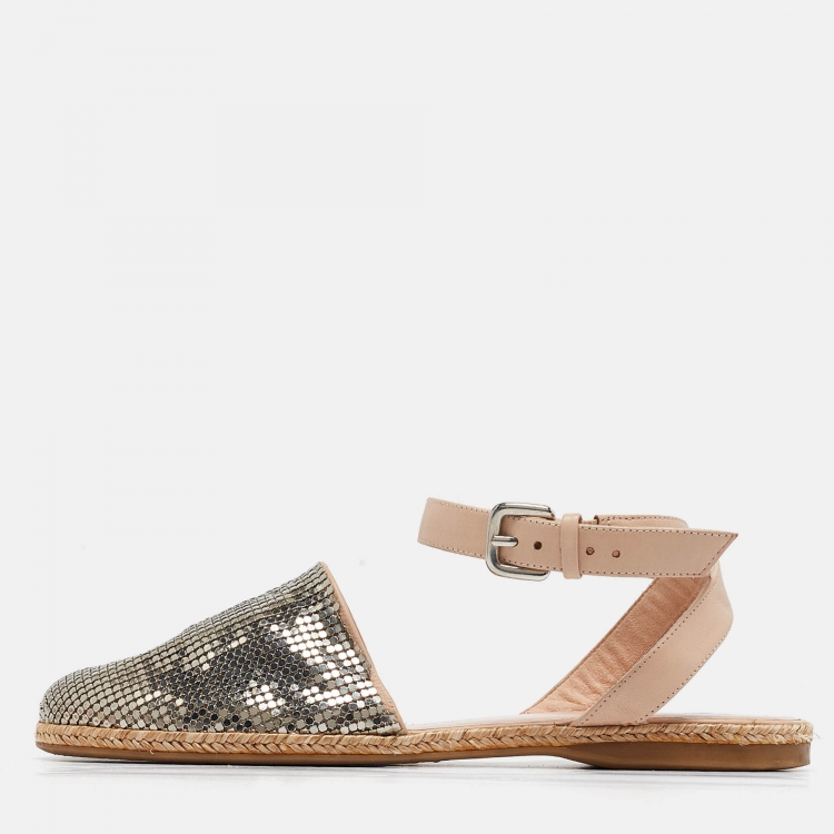 حذاء إسبادريل ستيوارت وايتزمان ميتال فضي/بيج وجلد لون بلوك مقاس 38