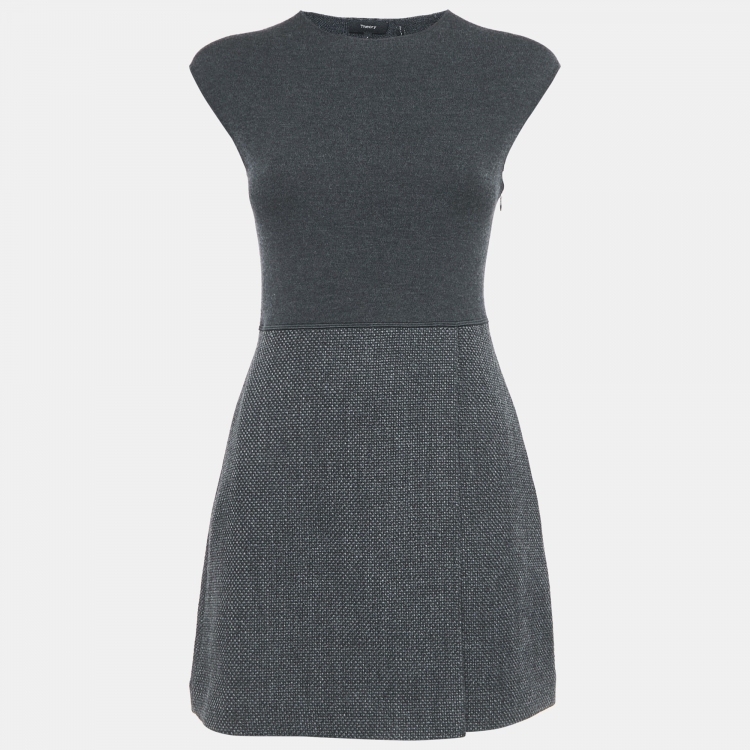مملوكة مسبقًا فستان ثيوري رمادي صوفي وجوت صغير - إكس سمول