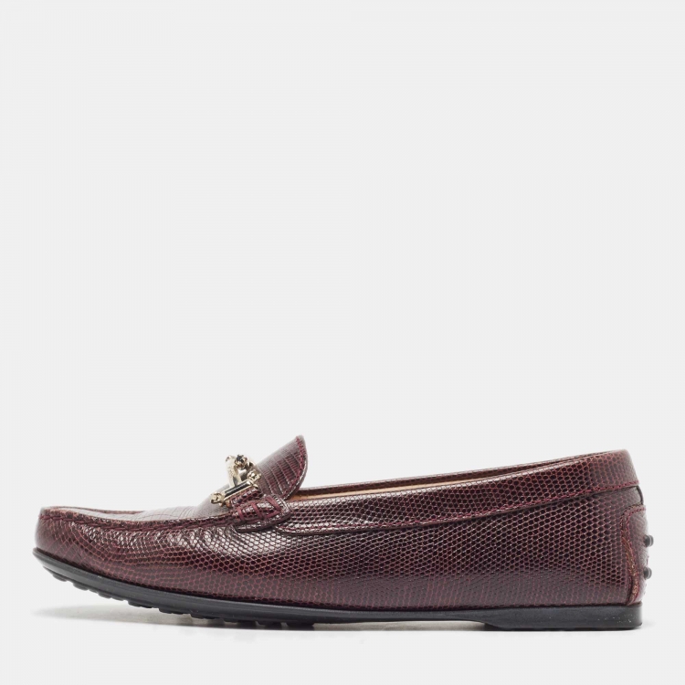 حذاء لوفرز تودز جلد محفور بورجوندي Double T مقاس 37