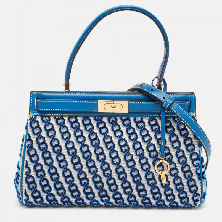 Tory Burch Blue Canvas and Velvet Small Lee Radziwill Top Handle Bag