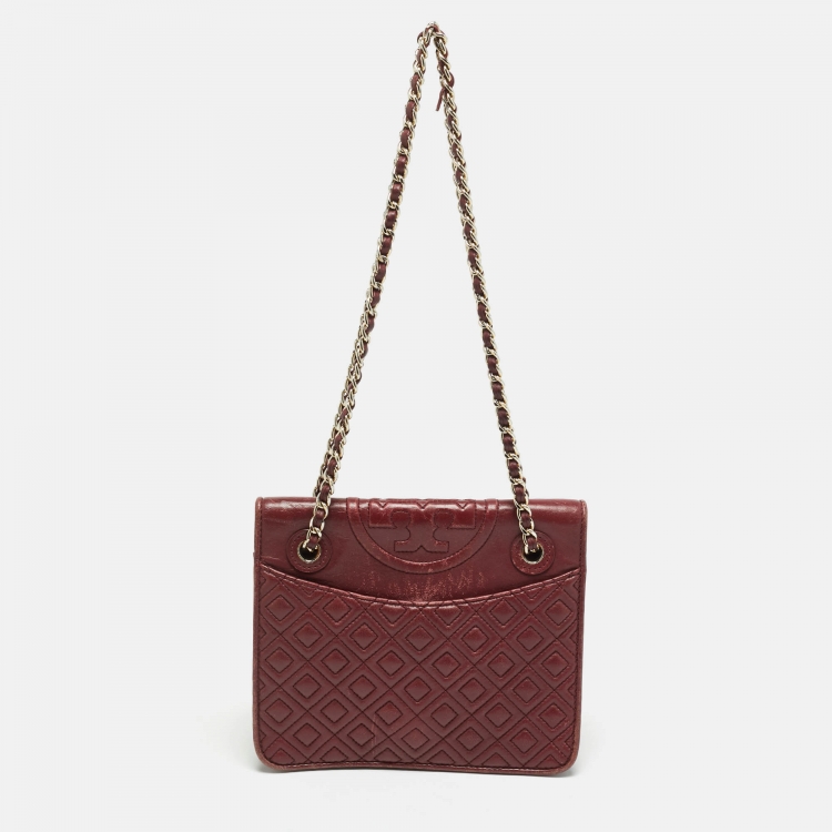 مملوكة مسبقًا حقيبة كتف توري برش فليمنغ جلد بورغندي صغيرة