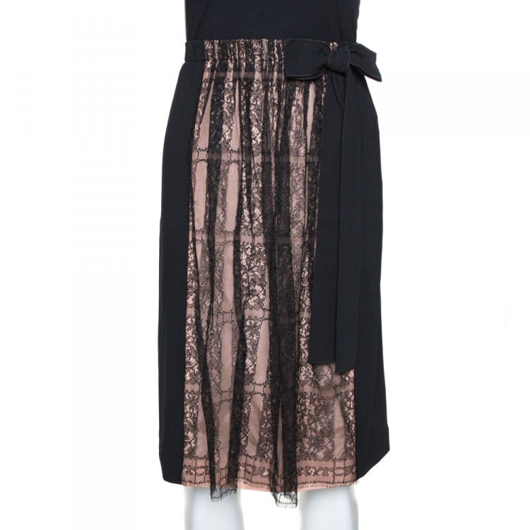 مملوكة مسبقًا  تنورة فالنتينو متوسطة الطول بقصات من الدانتيل و كريب أسود