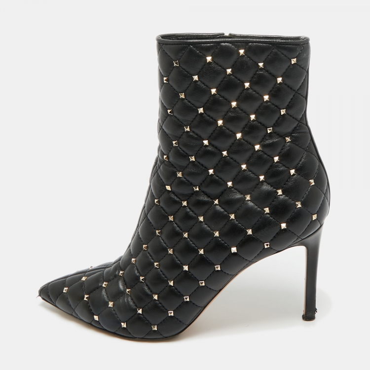 Pre Owned حذاء بوت فالنتينو جلد أسود روكستد بطول الكاحل مقاس 38