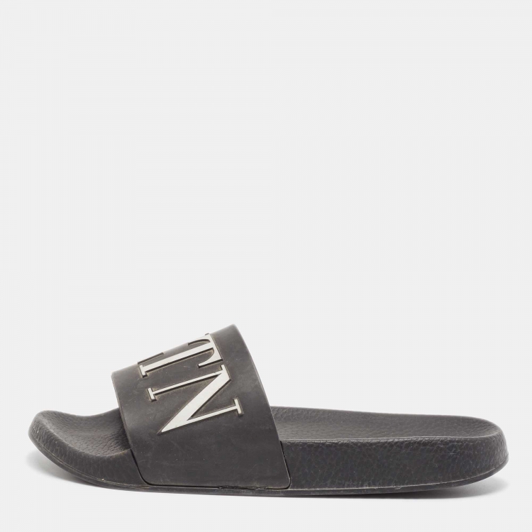 مملوكة مسبقًا صندل فالنتينو فلات مطاط أسود VLTN مقاس 38