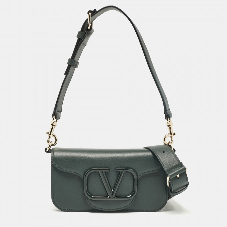 Valentino Dark Green Leather Small Loco Shoulder Bag