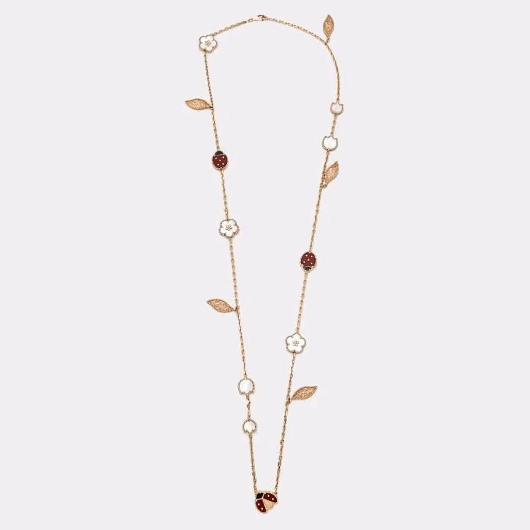 قلادة فان كليف أند أربلز لاكي سبرينغ حجارة متعددة ذهب وردي عيار 18
