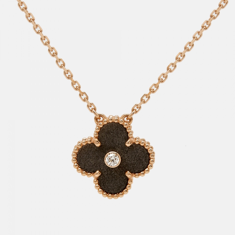 مملوكة مسبقًا Van Cleef & Arpels Vintage Alhambra Obsidian Diamond 18k Rose Gold 2023 Holiday Pendant Necklace