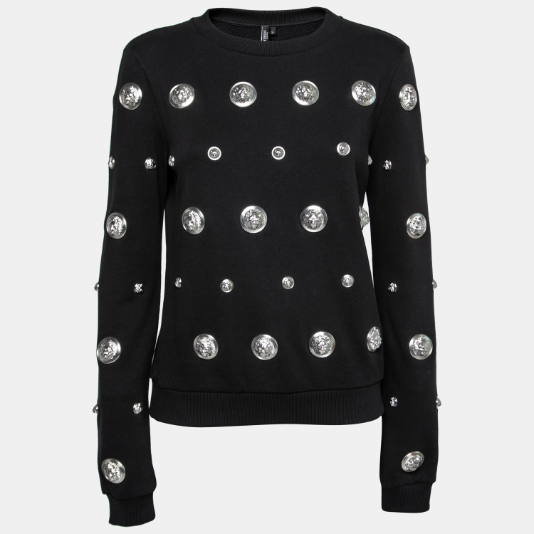 Versus Versace Black All Over Embellished Cotton Crewneck Sweatshirt L