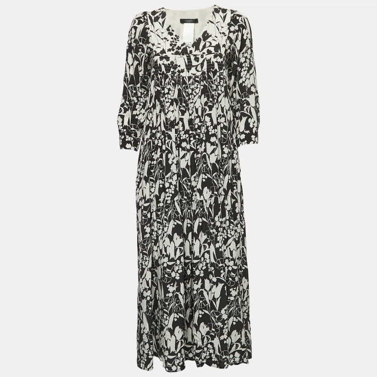 Weekend Max Mara Black Floral Print Silk V-Neck Midi Dress S