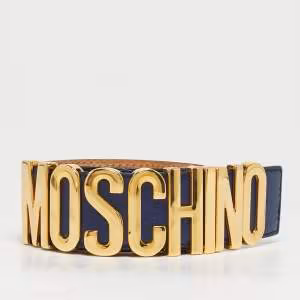 حزام موسكينو شعار كلاسيك جلد أزرق بحري للخصر
