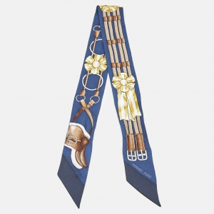 وشاح هيرمس جومبينغ تويلي حرير مطبوع أز رق بحري