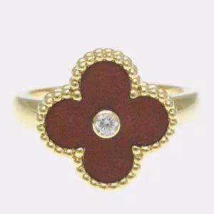 خاتم فان كليف آند أربلز فينتاج الحمراء ذهب أصفر عيار 18 والماس وعرق اللؤلؤ مقاس 55