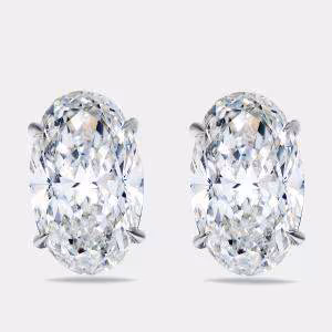 أقراط ذهب أبيض عيار 18 ألماس مزروع مختبرياً قطع بيضاوي براق 10.00 قيراط