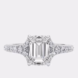 خاتم ألماس مُصنَّع في المختبر بوزن 2 قيراط بقطع زمردي من الذهب الأصفر عيار 14 بحجم 52.