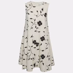 فستان أوسكار دي لارينتا قطن مطبوع بني بلا أكمام مقاس صغير - سمول