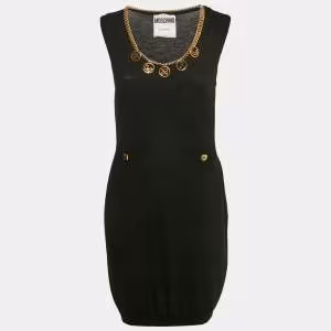 فستان ميني موسكينو كوتور صوف أسود بحلّة مزينة عند العنق مقاس وسط ( ميديوم )