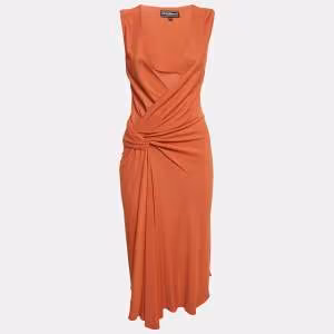 فستان سالفاتوري فيراغامو أورانج جيرسي برقبة منخفضة ميدي مقاس صغير (سمول)