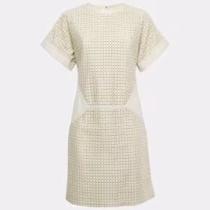 فستان سالفاتوري فيراغامو قصير قطن وبجلد بنمط رمادي فاتح مقاس وسط (ميديم)