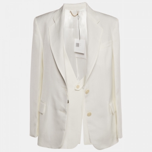بليزر فيكتوريا بيكهام أبيض حريري مفرد الصدر مقاس صغير (سمول)