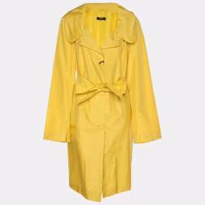 معطف بيرسونا حرير أصفر بحزام مقاس كبير (لارج)
